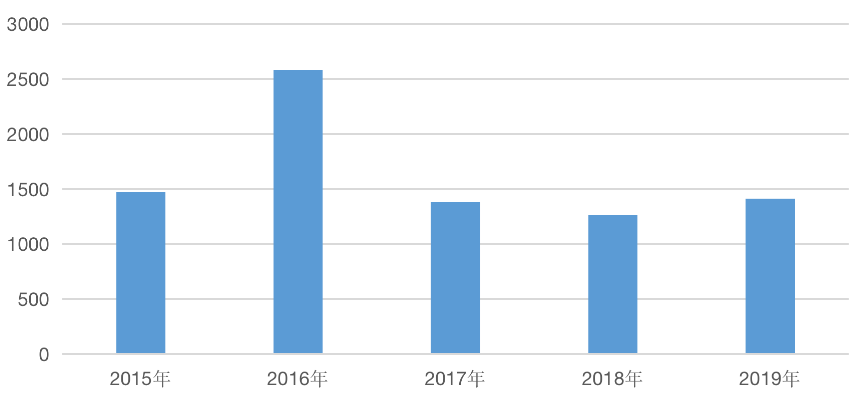 天津新房市場成交面積年度變化(單位:萬m2)