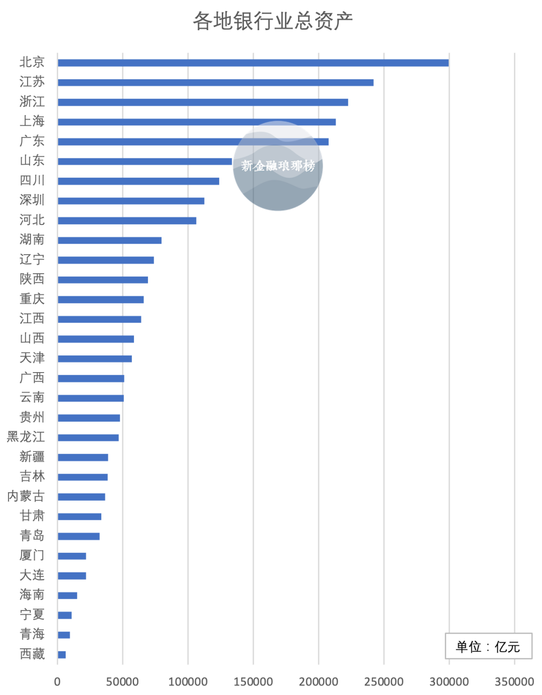 青海、西藏的銀行業總資產不到1萬億,其中西藏僅為6352億元;寧夏、海南也不到2萬億。