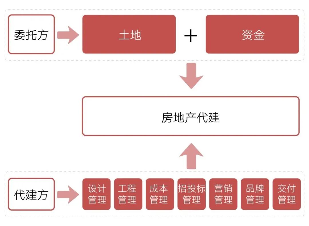代建模式是由持有土地的一方作為委托方,由擁有項(xiàng)目開(kāi)發(fā)建設(shè)經(jīng)驗(yàn)的專(zhuān)業(yè)代建方承接,雙方以平等協(xié)商建立合作關(guān)系,并實(shí)現(xiàn)共同盈利的合作開(kāi)發(fā)模式。