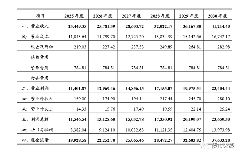 截取底層資產高速公路未來現金流預測部分數據(全部預測期限自2019年至2034年9月末),如下圖所示: