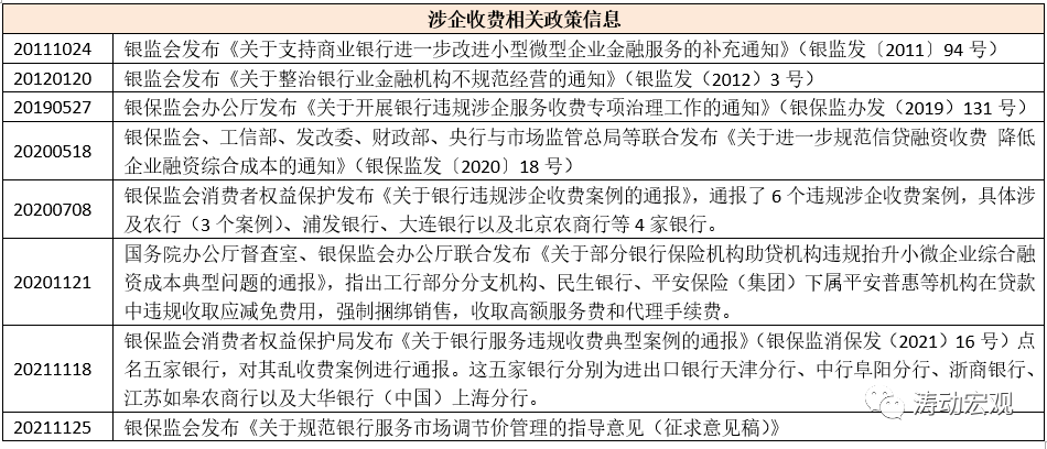 諸多跡象表明,銀保監(jiān)會近年來對各類亂收費、推高企業(yè)綜合融資成本的行為給予了較高程度的關(guān)注,并正強化對金融機構(gòu)收費行為的監(jiān)管,如銀保監(jiān)會官網(wǎng)多次通報涉企收費案例以及2021年11月25日銀保監(jiān)會發(fā)布《關(guān)于規(guī)范銀行服務(wù)市場調(diào)節(jié)價管理的指導(dǎo)意見(征求意見稿)》等,預(yù)計后續(xù)關(guān)于涉企收費問題將迎來新一輪專項檢查,值得關(guān)注。這里面需要遵循的原則包括有沒有提供收費服務(wù)的能力(如財顧咨詢費的收取)、提供的服務(wù)與收費是否質(zhì)價相符等兩類。