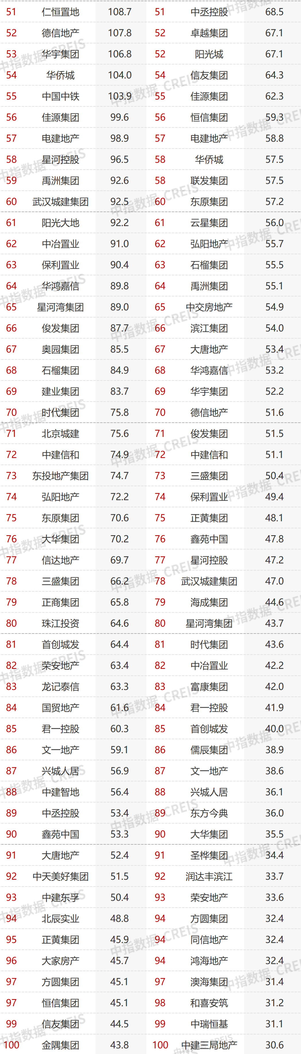 保利置業(yè)有一定排名下滑,不過(guò)總體還是五六十位。