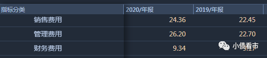 有息負債高企,榮盛發(fā)展融資成本上升,2019和2020年其財務(wù)費用支出均超9億元,另外銷售費用和管理費用也逐年增長,期間費用對公司利潤形成嚴重侵蝕。