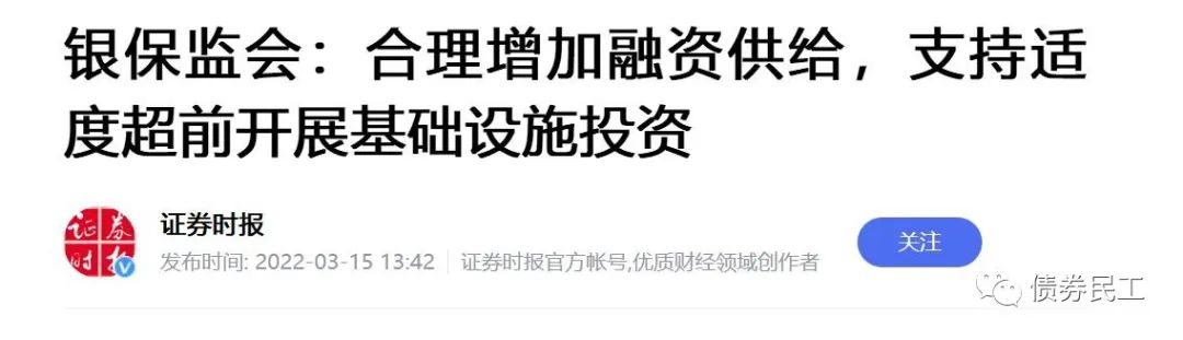 根據證券時報2022年3月15日的報道,“銀保監會支持支持適度超前開展基礎設施投資”。