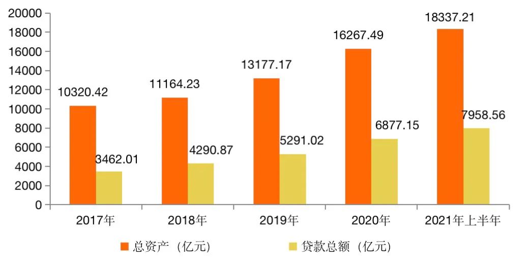 統(tǒng)計數(shù)據(jù)顯示,寧波銀行的資產(chǎn)規(guī)模從2017年的10320.42億元增長至2021年上半年的18337.21億元,增幅達到近八成。與此同時,貸款總額也從3462.01億元增長至7958.56億元,增幅實現(xiàn)1.3倍,可見近年來保持穩(wěn)健的增長態(tài)勢。