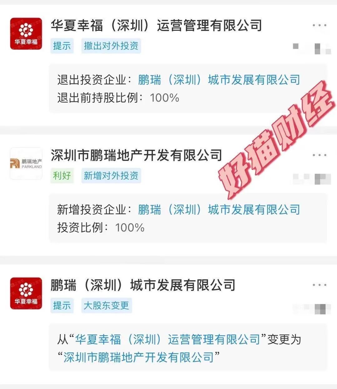昨天,“華夏幸福(深圳)城市更新管理有限”的股東從“華夏幸福(深圳)運(yùn)營(yíng)管理有限公司”變更為“深圳市鵬瑞地產(chǎn)開(kāi)發(fā)有限公司”,并更名為“鵬瑞(深圳)城市發(fā)展有限公司”。