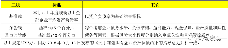 1、根據(jù)2018年9月13日中辦和國辦發(fā)布的《關(guān)于加強(qiáng)國有企業(yè)資產(chǎn)負(fù)債約束的指導(dǎo)意見》,3號(hào)文按照資產(chǎn)負(fù)債率的基準(zhǔn)線、預(yù)警線和重點(diǎn)監(jiān)管線等三線要求對(duì)地方國企實(shí)行名單制管理,即對(duì)資產(chǎn)負(fù)債率超過警戒線和重點(diǎn)監(jiān)管線的企業(yè),根據(jù)風(fēng)險(xiǎn)大小程度分別納入兩重(即重點(diǎn)關(guān)注和重點(diǎn)管控企業(yè))。