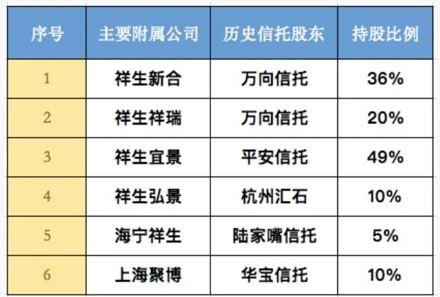 先是上市前的招股說明書,在招股說明書中列出的10家主要附屬公司中,有6家在歷史上有過信托公司持股。