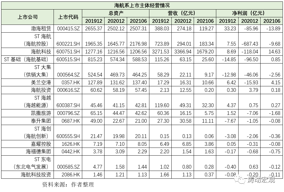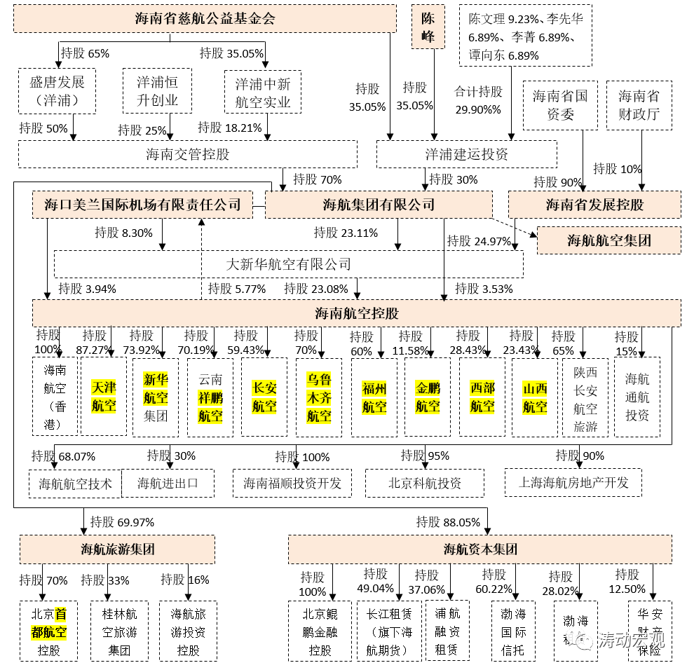 3、海航系通過海航旅游集團、海航基礎等主體控制其它板塊。