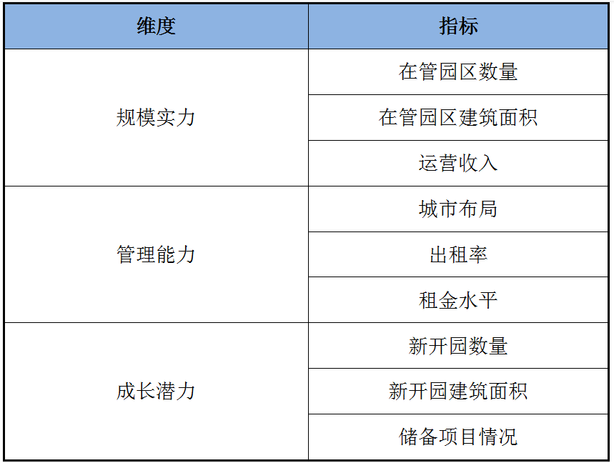 表6:產業(yè)園區(qū)運營企業(yè)運營力指標體系