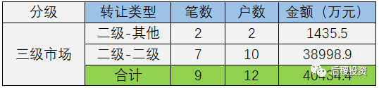 根據已有數據顯示,三級市場總成交12戶,總成交金額約4億元。成交規模最大的為二級投資機構之間的債權出讓,成交金額在三級市場中占96.5%。