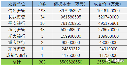 另外需要補充說明的是:本次統計四川省2019年度成交公告共計539戶,其中債權本金顯示為未透露狀態的有71戶。未透露成交記錄的明細如下: